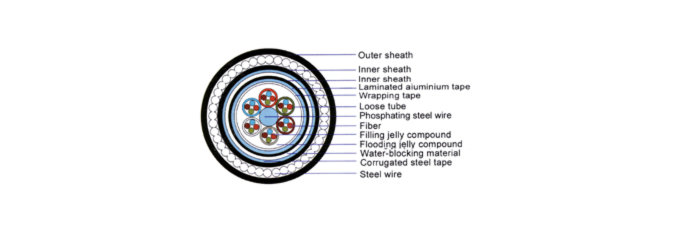 - Corrugated steel tape armoring I steel wires armoring, loose tube stranding, three-layer sheaths structure;