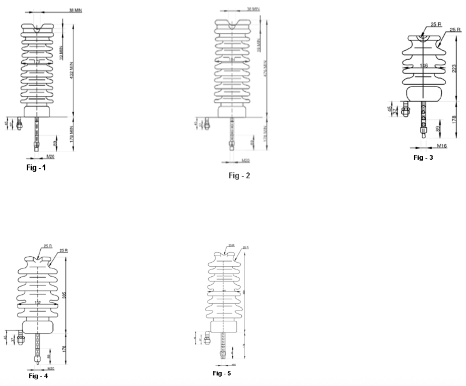 | Wet flashover kV | 60 | 85 | 100 | 125 | 150 | |