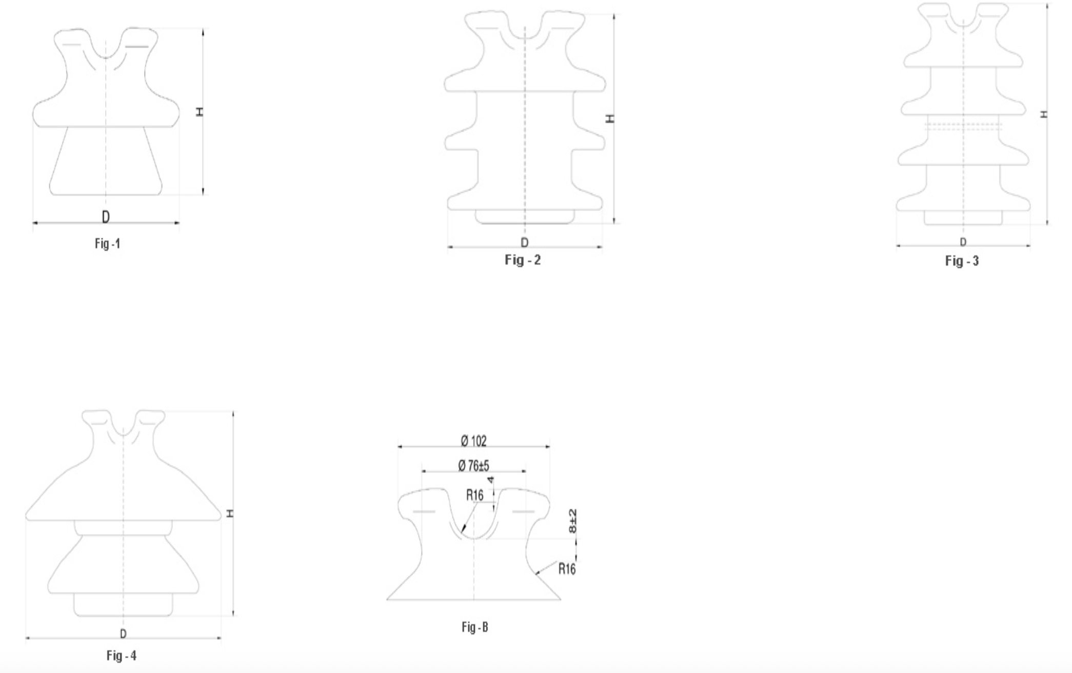 | Type | Fig | Main Dimension | Creepage Distance | Lightning Impulse Withstand Voltage (KV) | Wet Power Frequency withstand Voltage (KN) |